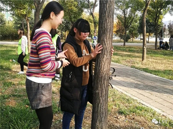 活动开始,主持人用“大风吹”的破冰游戏活跃了现场气氛,用描述词语的方式将大家随机分为五组并分配职务,鼓励同学们积极参与活动。游戏“翻山越岭”让大家深刻意识到陆地生态的脆弱;游戏“碎镜重圆”教育大家生态破坏的不可逆性与生态修复的困难性;游戏“盲道”和“盲人摸树”让大家利用触觉充分感受校园中的自然景观,同时增强了团队合作能力。主持人声情并茂的讲授使大家都积极投入各个活动中。