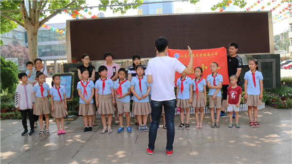 担任讲师和助理工作的是济南大学数学科学学院的志愿者团队,济南大学数院的志愿者们冒着酷暑,搭乘公交车提前一个小时辗转来到位于和平路的山师附小,但由班级及校方的衔接出现问题,门卫不允许志愿者讲师们进入,七位济大志愿者讲师只能带着教具,站在校门口的烈日下等待消息。